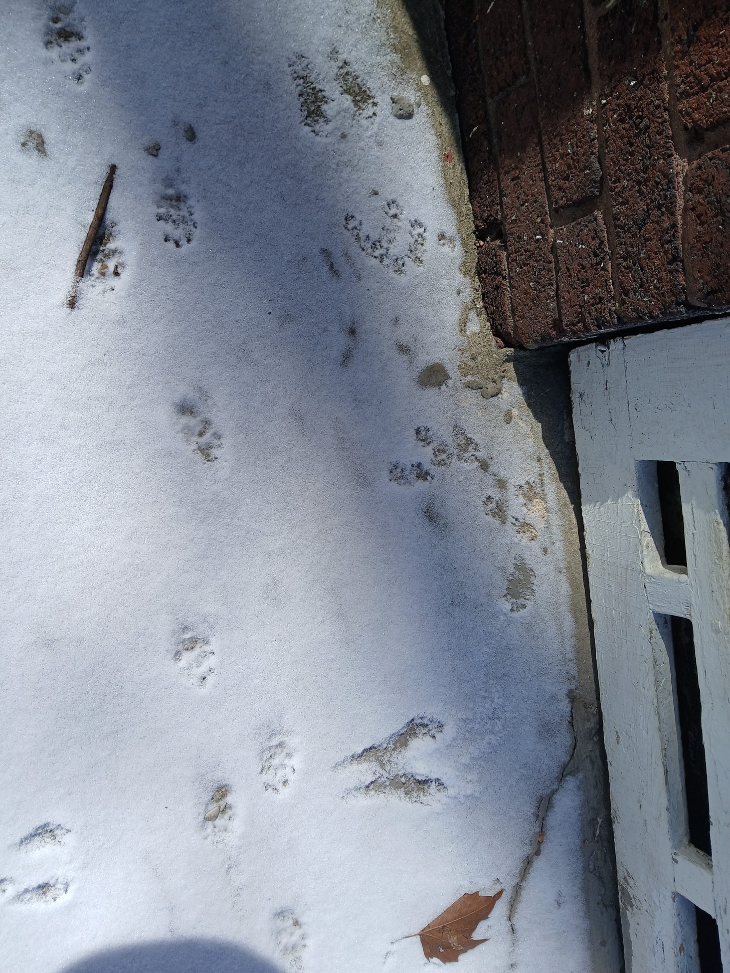 News all around the world is really upsetting. Here’s some photos of chipmunk, squirrel, rabbit, human, and cat tracks in the snow. I hope you find them soothing.